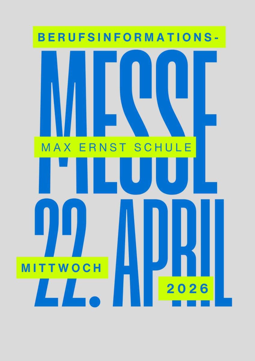 Am kommenden Mittwoch, 22.04.2026, richten die Klassen R9a und R9b in der Mensa der Max-Ernst-Schule eine Berufsmesse für die Schülerinnen [...]