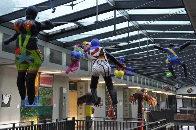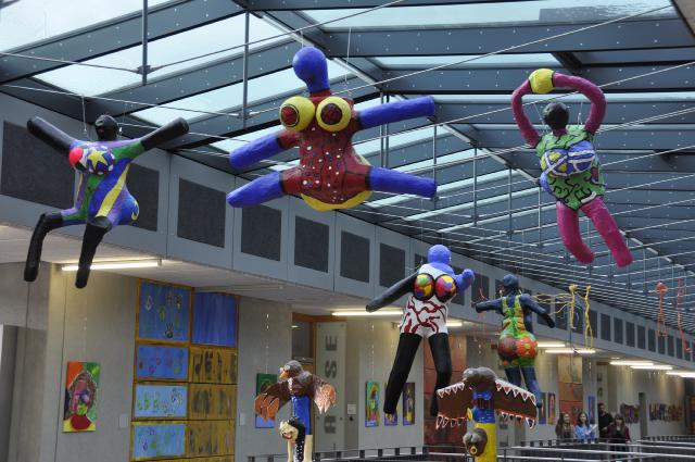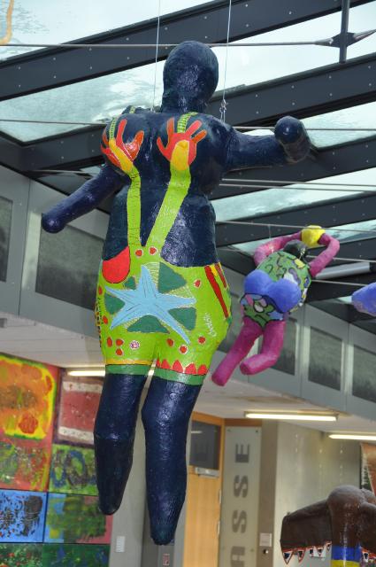 Herstellung von Nanas nach Niki de St. Phalle: Pappmaché auf Draht, Jahrgang 9/10 (2013/14), Wahlpflichtfach Kunst.