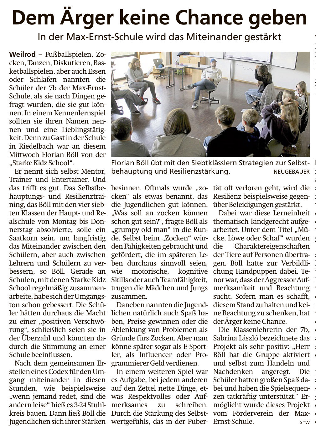 Förderverein der MES finanziert Projekt „Starke Kidz School“ zur Stärkung des sozialen Miteinanders